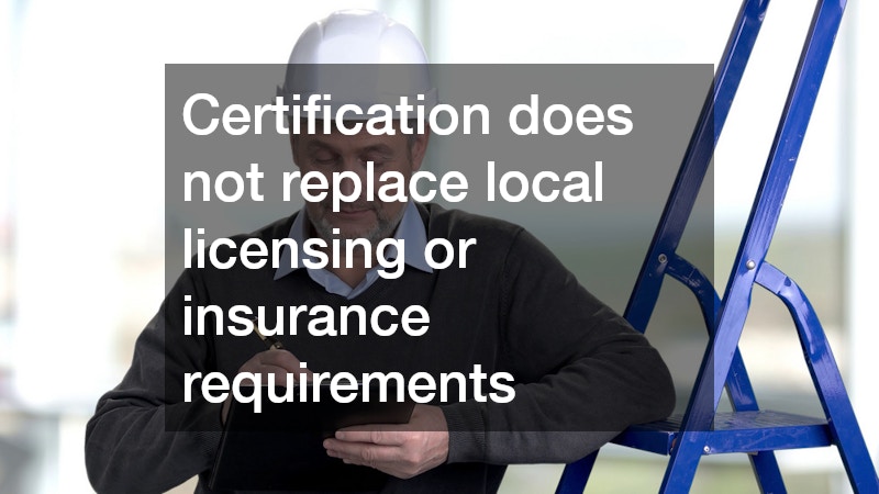 • Certification does not replace local licensing or insurance requirements; it complements them.